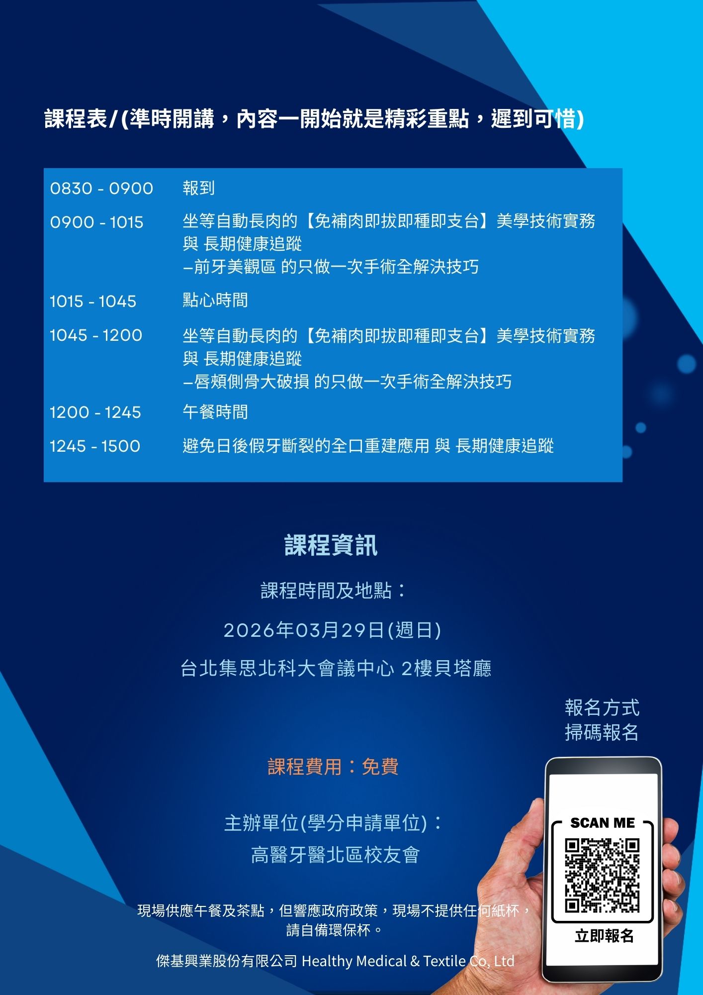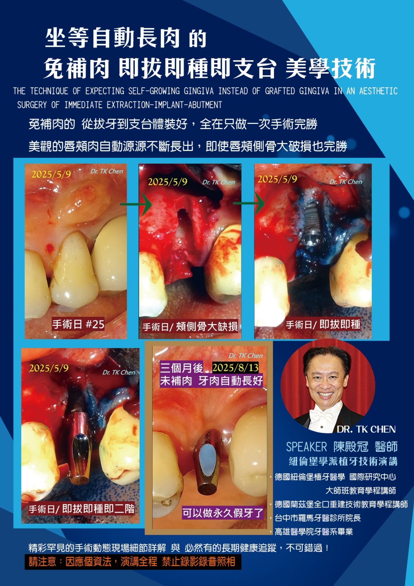 2026年03月29日陳殿冠醫師「坐等自動長肉的免補肉即拔即種即支台美學技術」課程